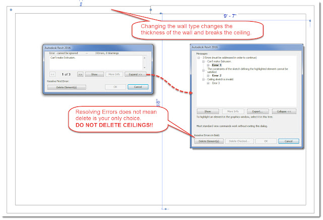 Once you know which ceilings are affected you can fix them. Select the ceiling and choose the Edit Boundary button on the ribbon. It's not a difficult fix, but if you have a lot of ceilings to fix it could get tedious.
