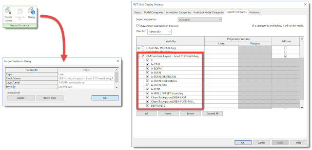 The downside to nested links is you can't control the dwg layers as easily as a direct link. Direct linked dwg's allow you to query the object and either hide or delete layers from the Import Instance Query dialog. In a nested dwg scenario you can still control the layers, but you have to do it through the RVT Link Display Settings> Import Categories tab. In this scenario you can't query the lines so it helps to know the layers that make up the line work in the dwg.